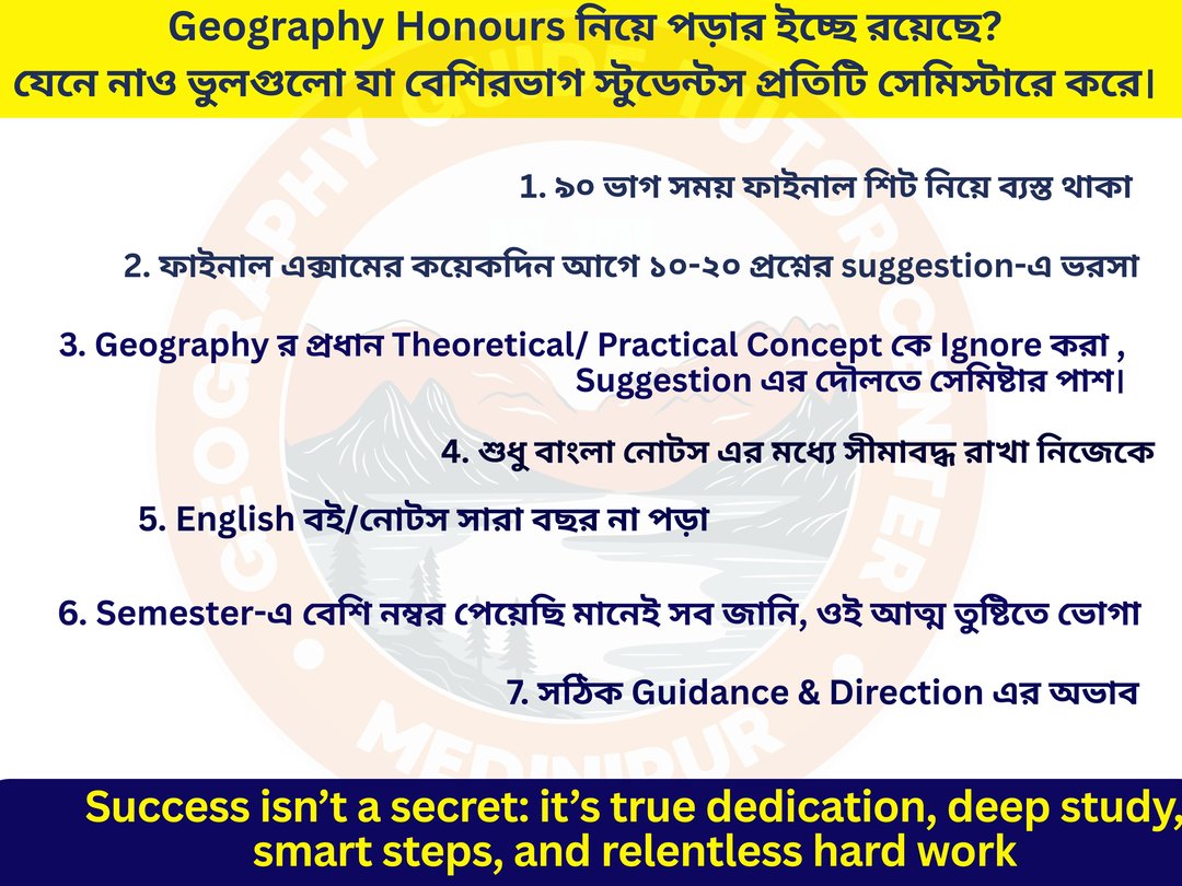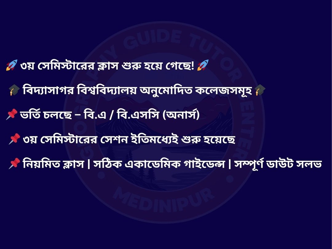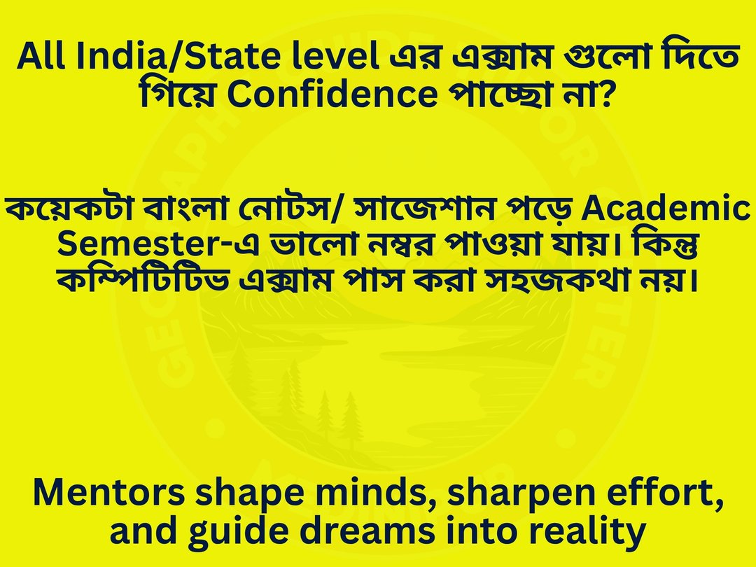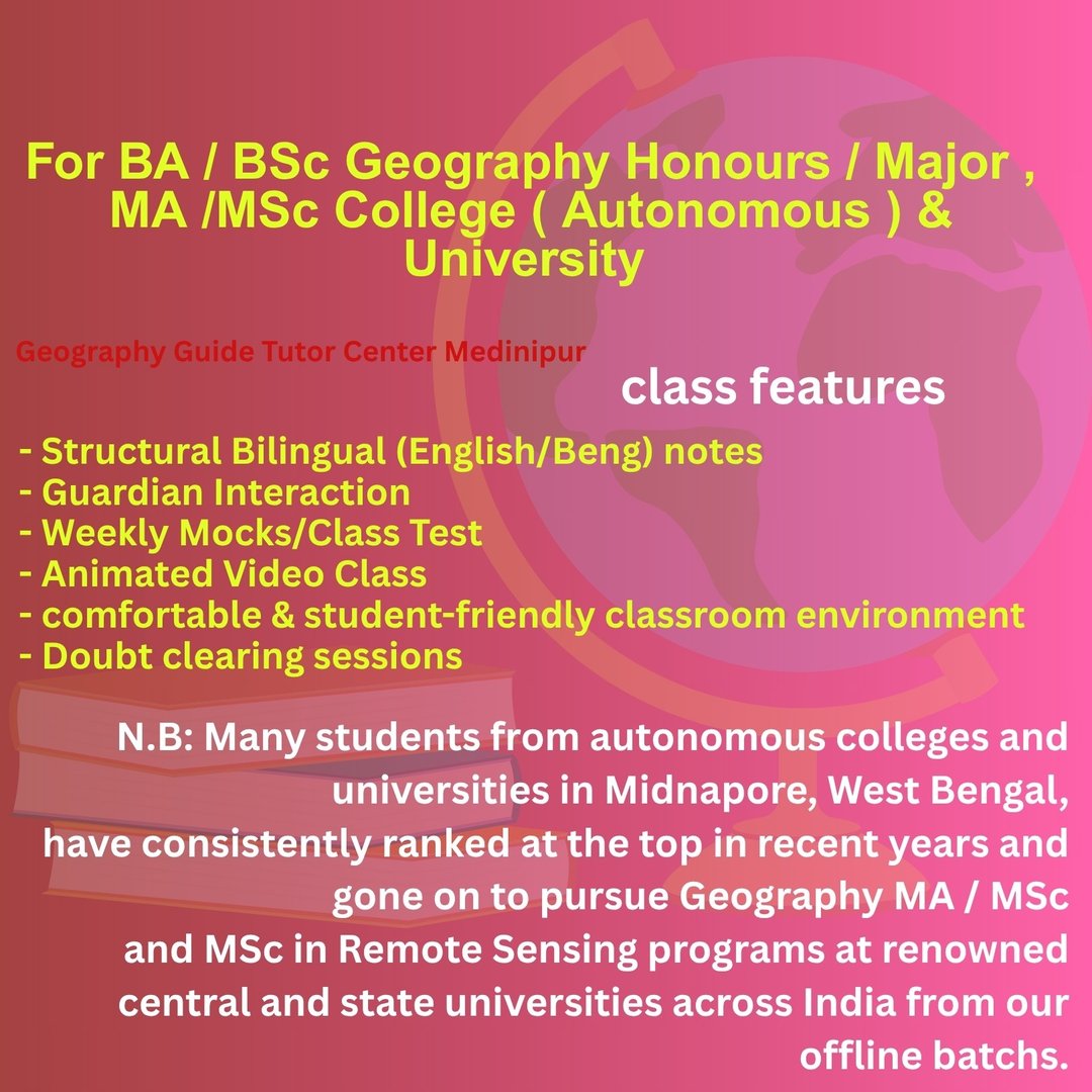 Geography Tuition Tutor Center - BA BSc Honours College MA MSc University CUET Entrance UGC NET - with Affordable Fees in West Bengal , Online / Offline Tutor , Led by highly qualified - top expert Geography teacher , the tuition center is dedicated to students of the Geography Department from various autonomous, affiliated Colleges / Universities across North to South West Bengal, including Kolkata University , Burdwan University and affiliated colleges of Vidyasagar University across Purba (East) / Paschim (West) Medinipur , Jhargram , Kolkata, Howrah, Hooghly , Bardhaman , Purulia , Bankura and other districts of West Bengal . Individual attention, animated PPT classes, 24x7 doubt-clearing, regular mock, structured study note, Since 2018