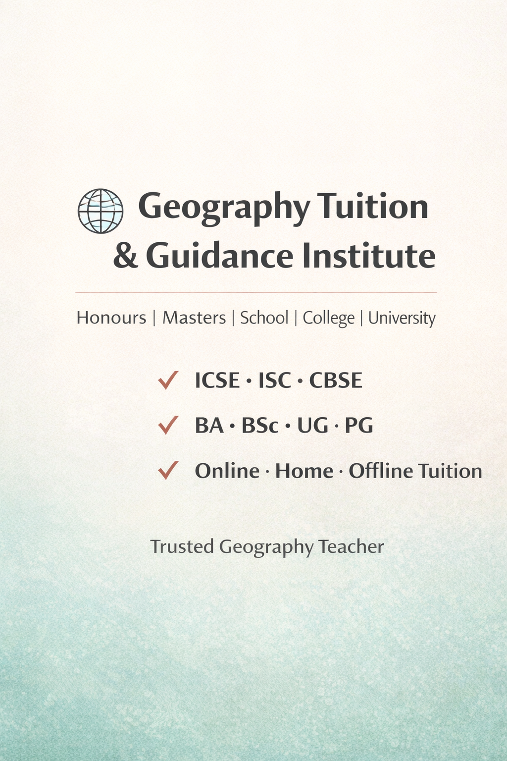 Geography Tuition Tutor Teacher - BA BSc Honours College MA MSc University CUET Entrance UGC NET